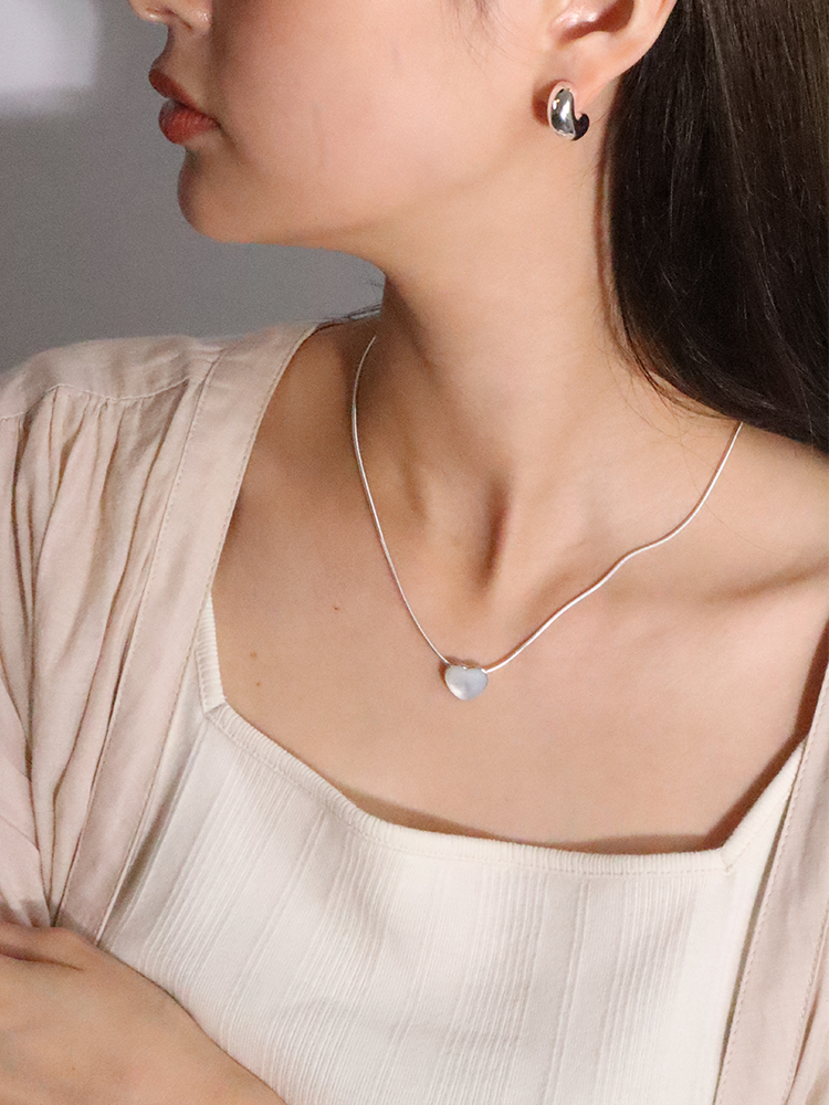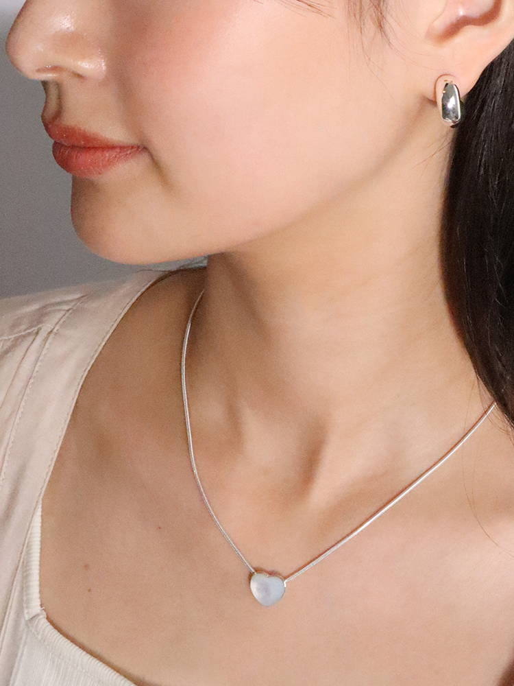 マザーオブパールの雰囲気たっぷりのミルキーな色合いが印象的なハートネックレスです。
