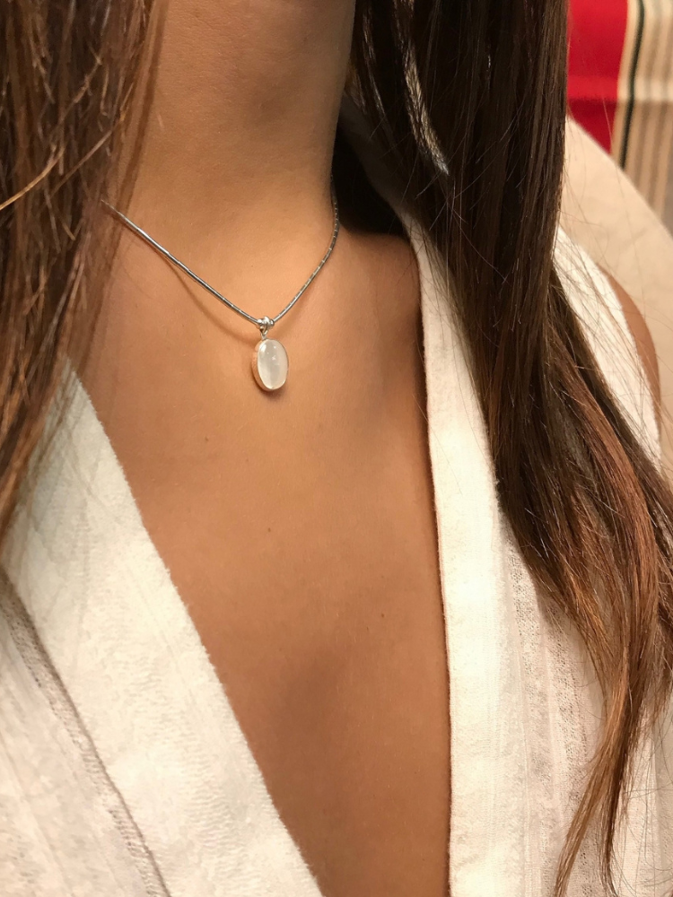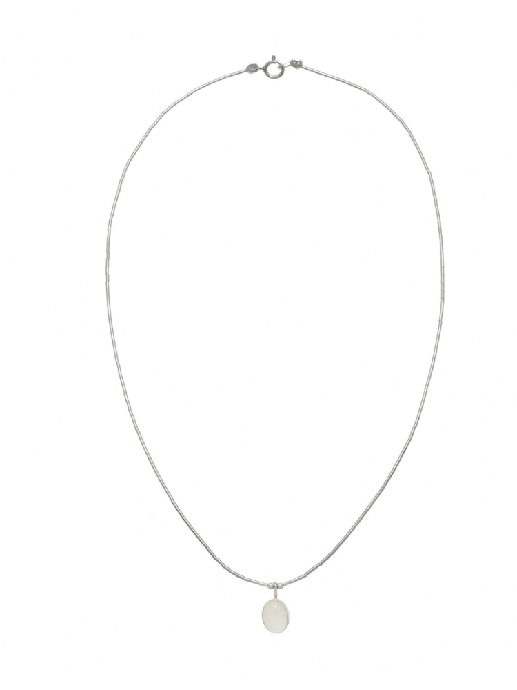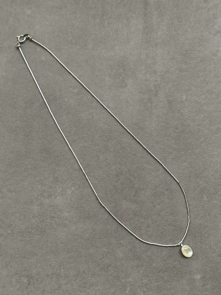 オーバルシェイプのマザーオブパールを一粒あしらったシンプルなネックレス。