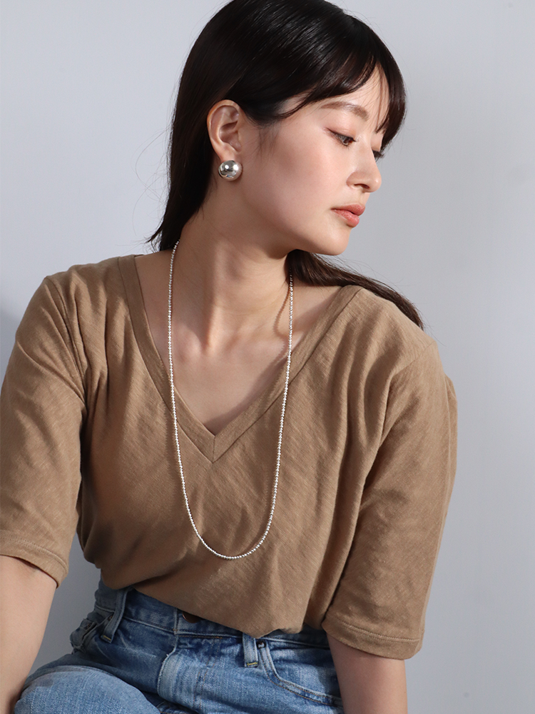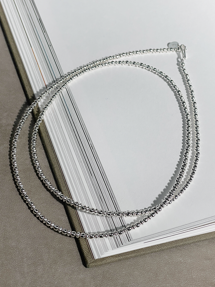 洗練された美しさと独自のスタイルのあるこちらのネックレスは、3ミリ粒で小さめながらも、その輝きは目を引きます。