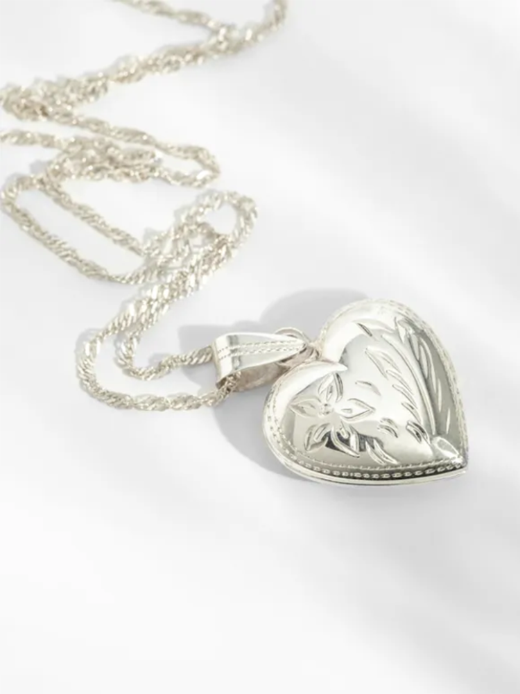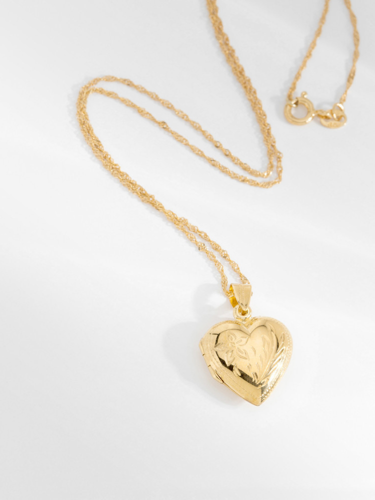 彫刻模様が施されたアンティークな雰囲気が漂うハートチャーム。