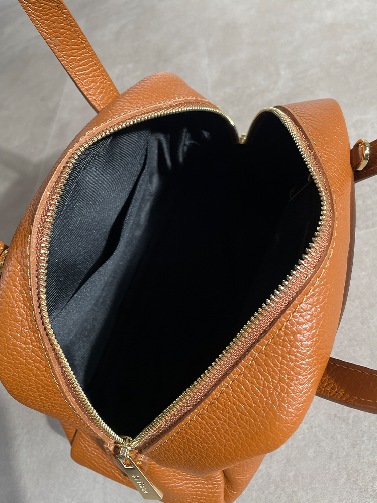 シボ感のあるやわらかなレザーは、傷が目立ちにくく、また荷物の出し入れもしやすいです。