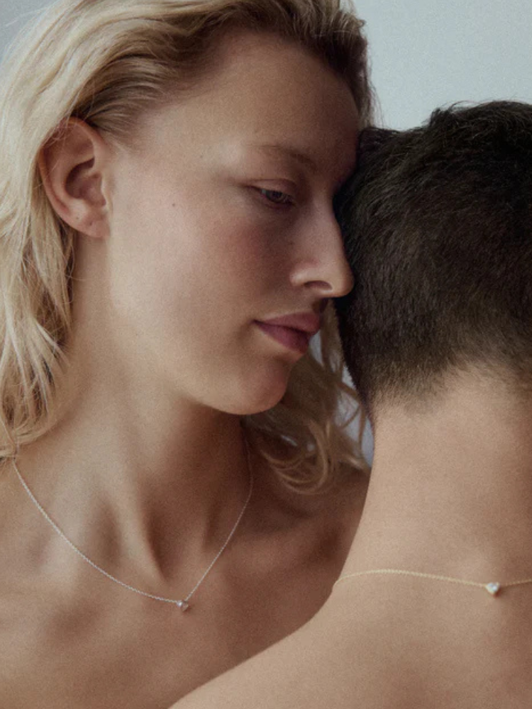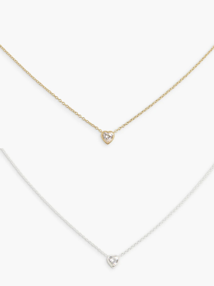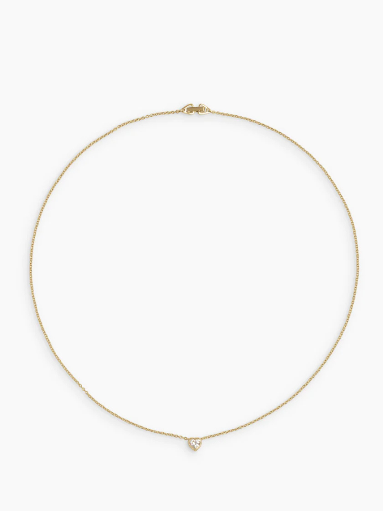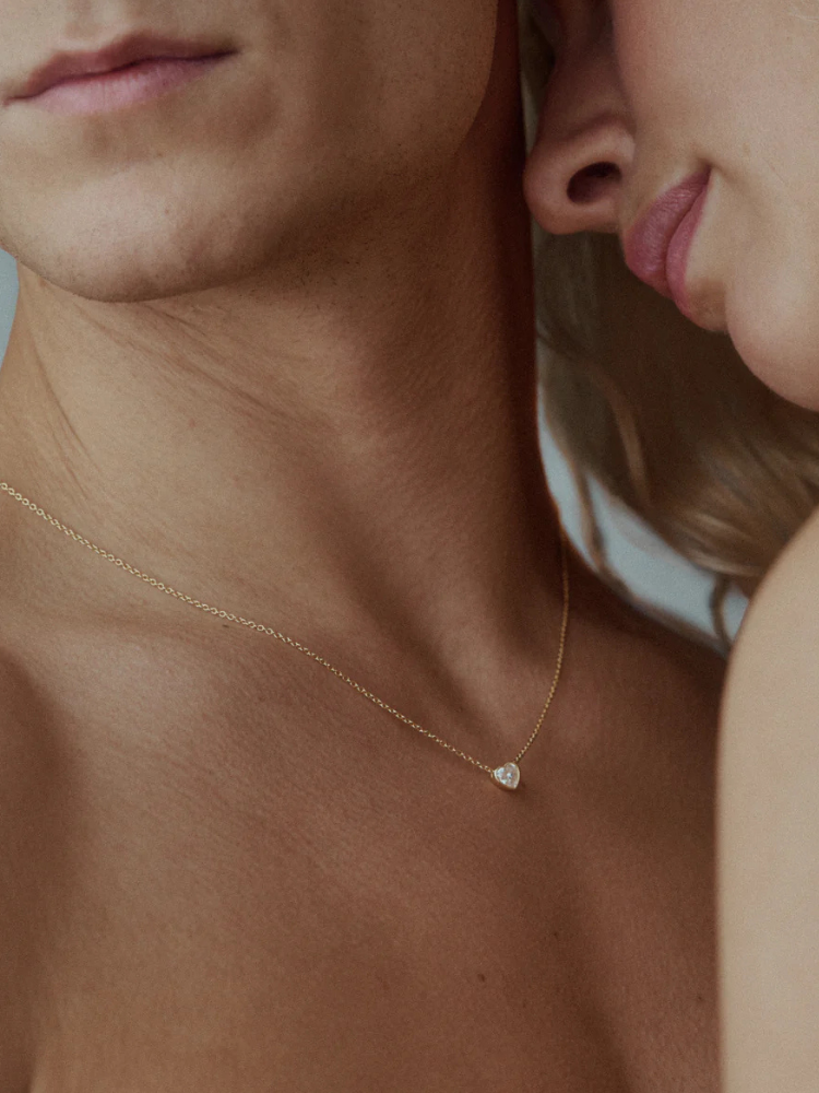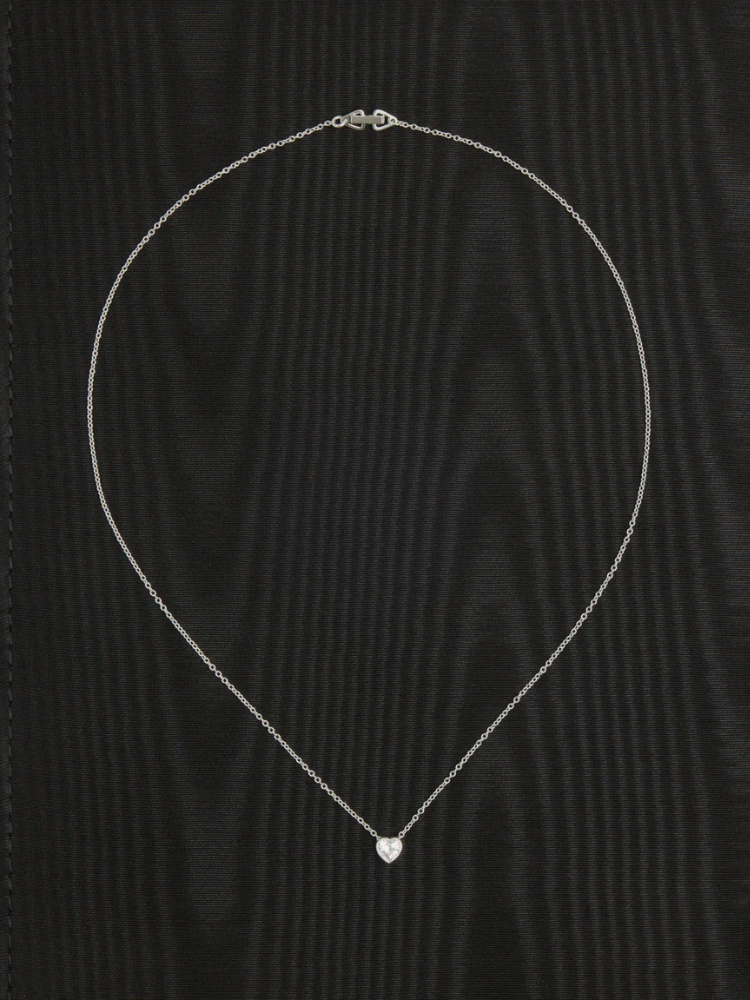 チェーンに沿ってやさしく滑り、自然と胸元の中心に落ち着くハートシェイプストーン。