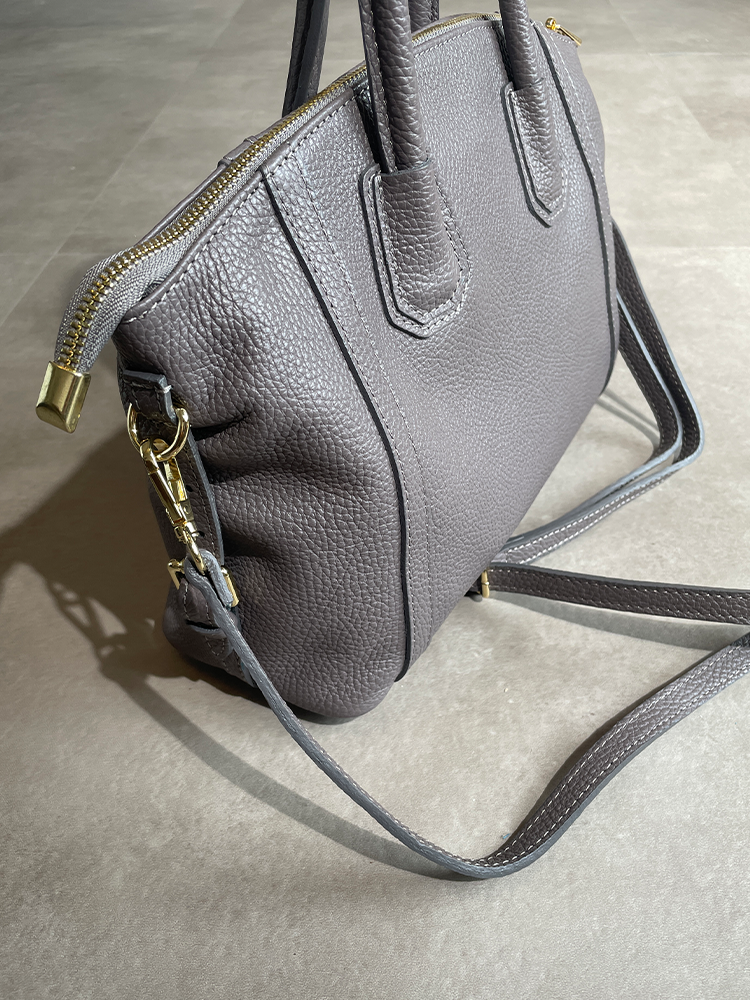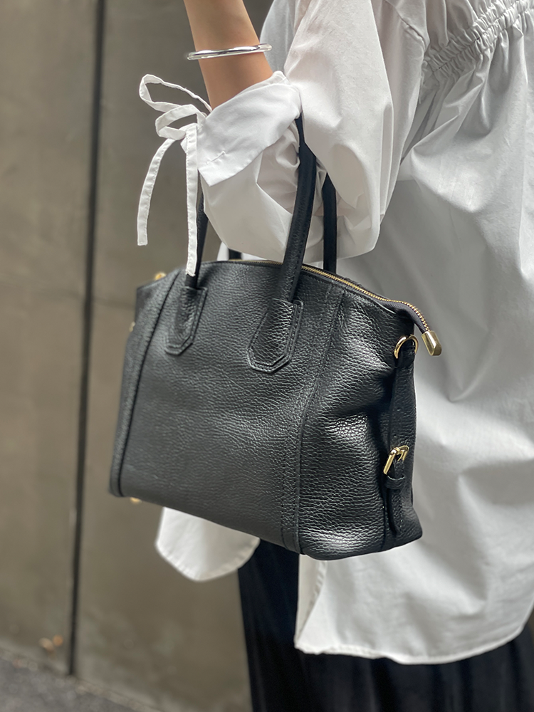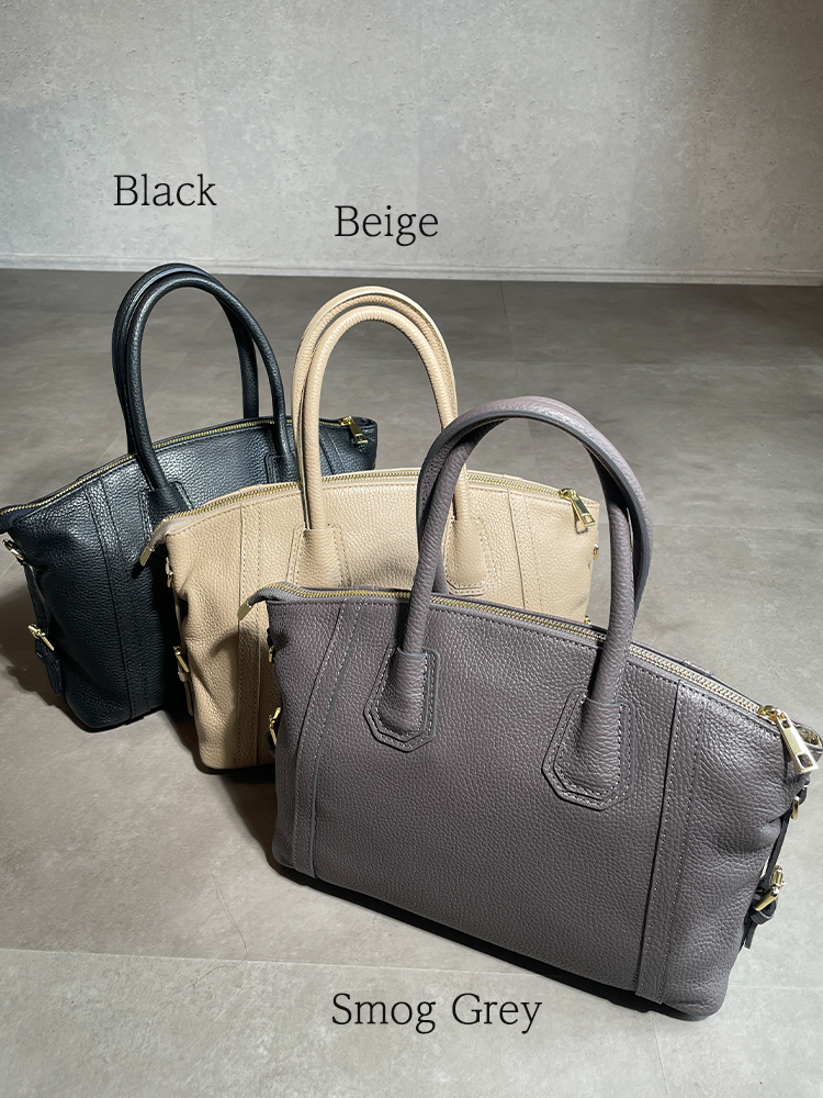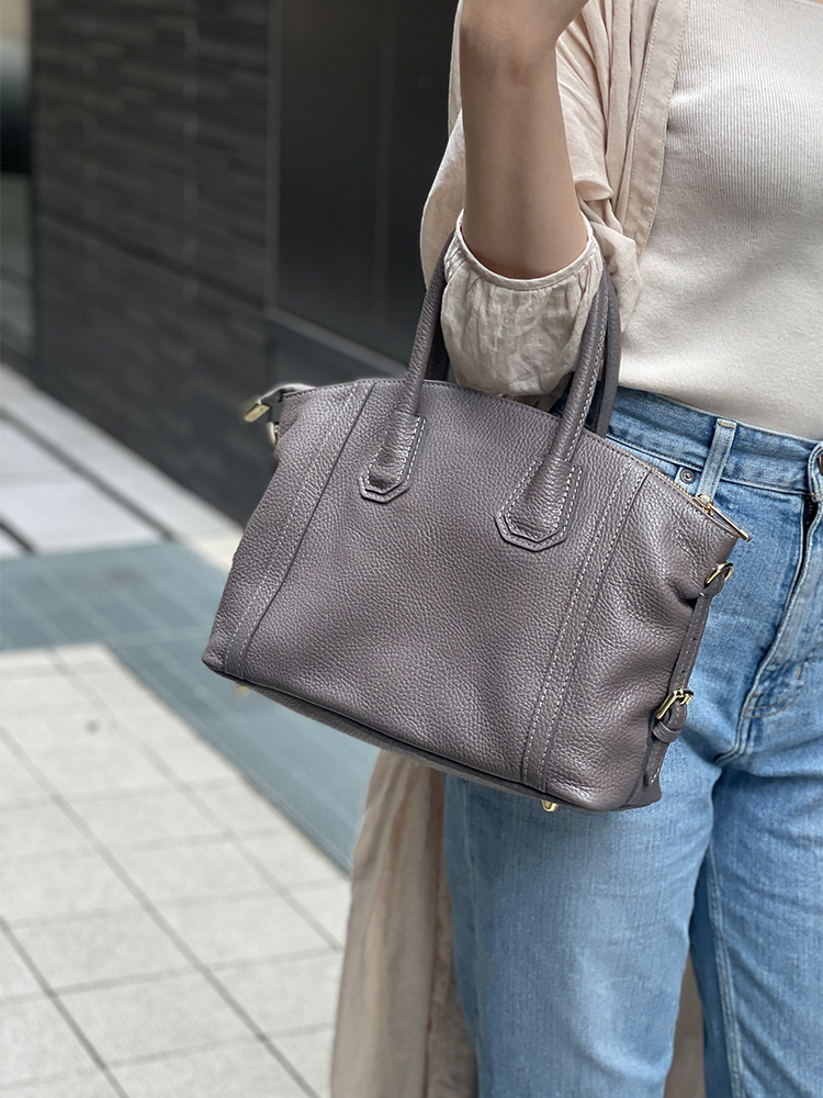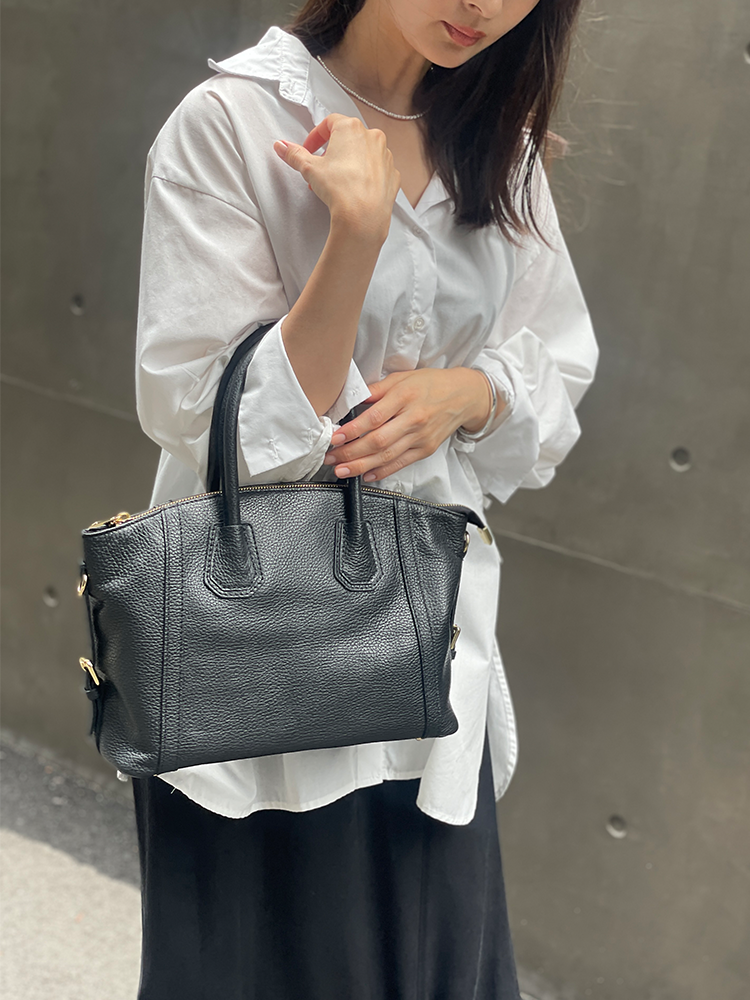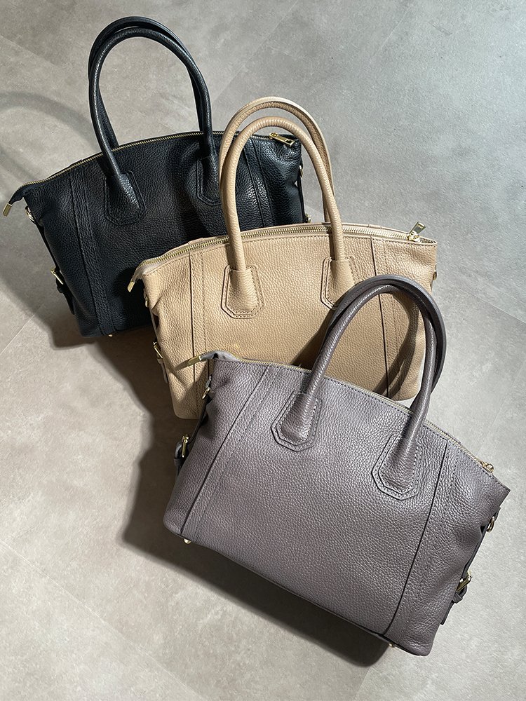 シボのある柔らかなレザーが特徴で、傷が目立ちにくい為、長くご愛用頂けるレザーバッグ。