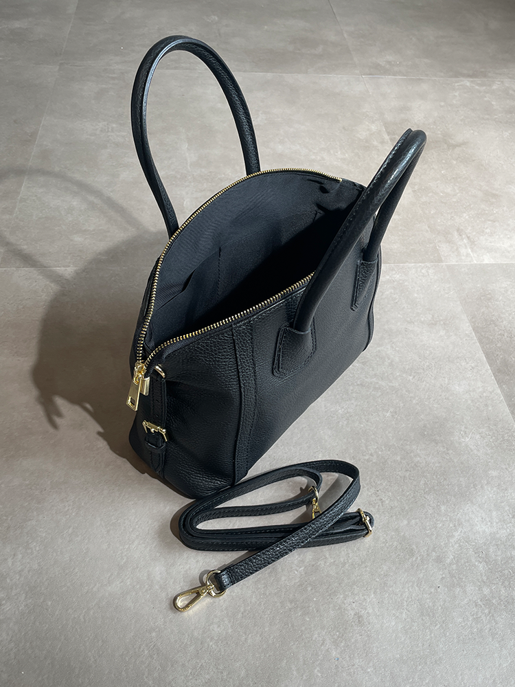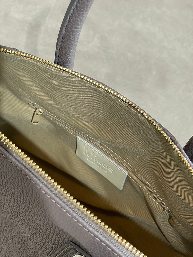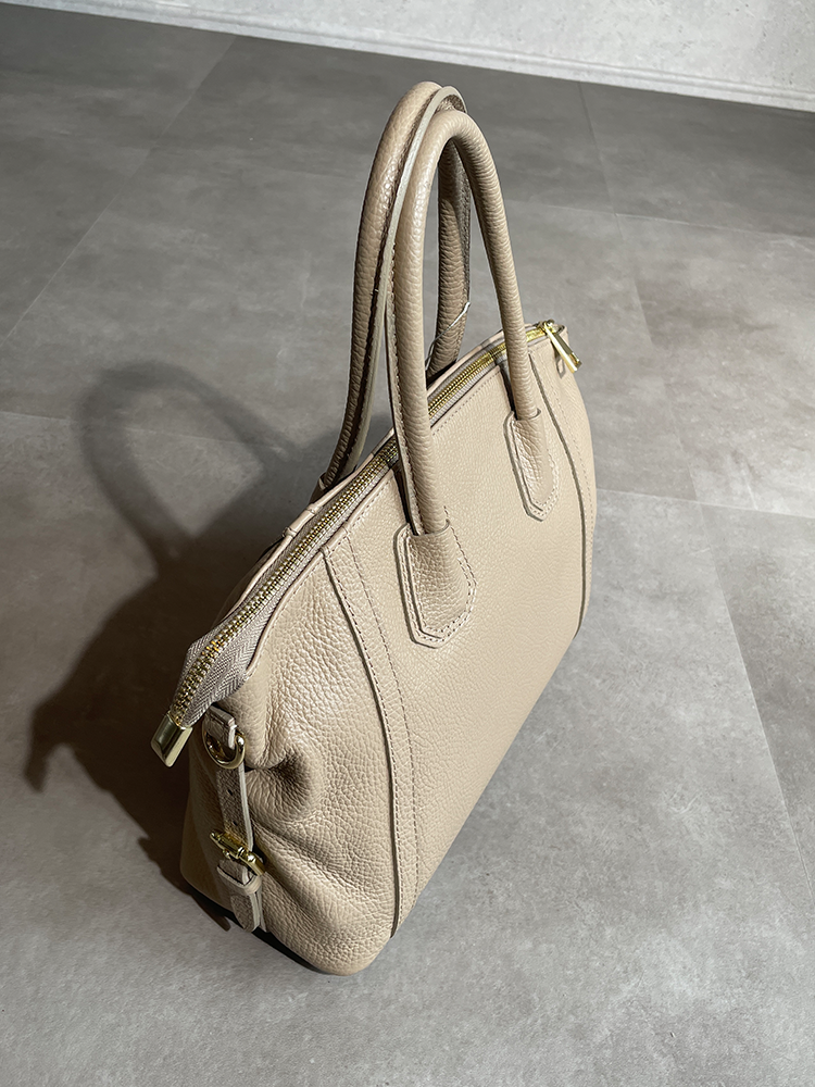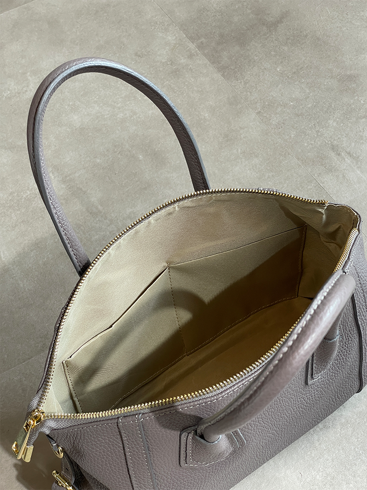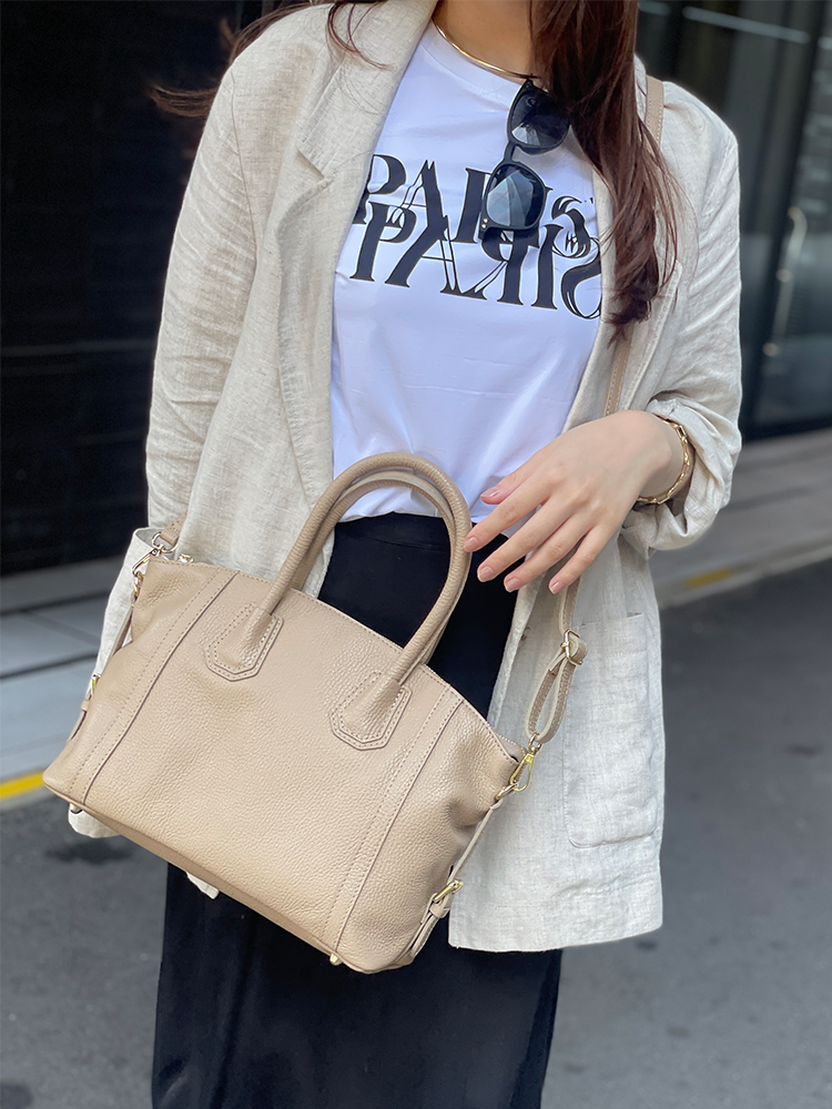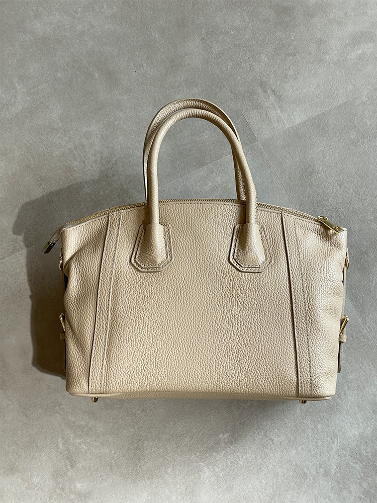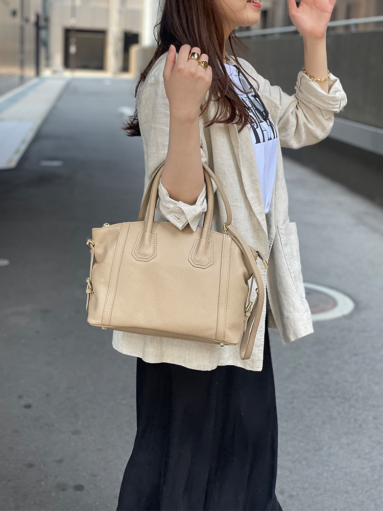 シボのある柔らかなレザーが特徴で、傷が目立ちにくい為、長くご愛用頂けるレザーバッグ。