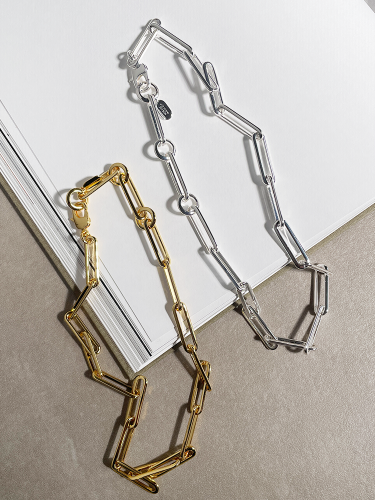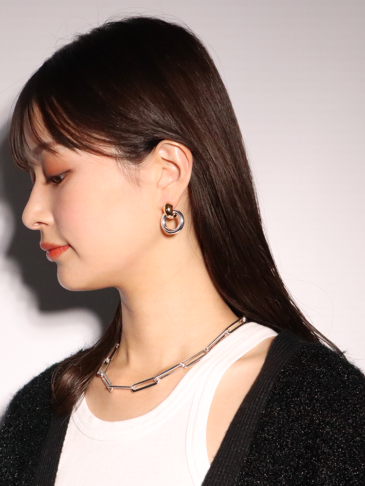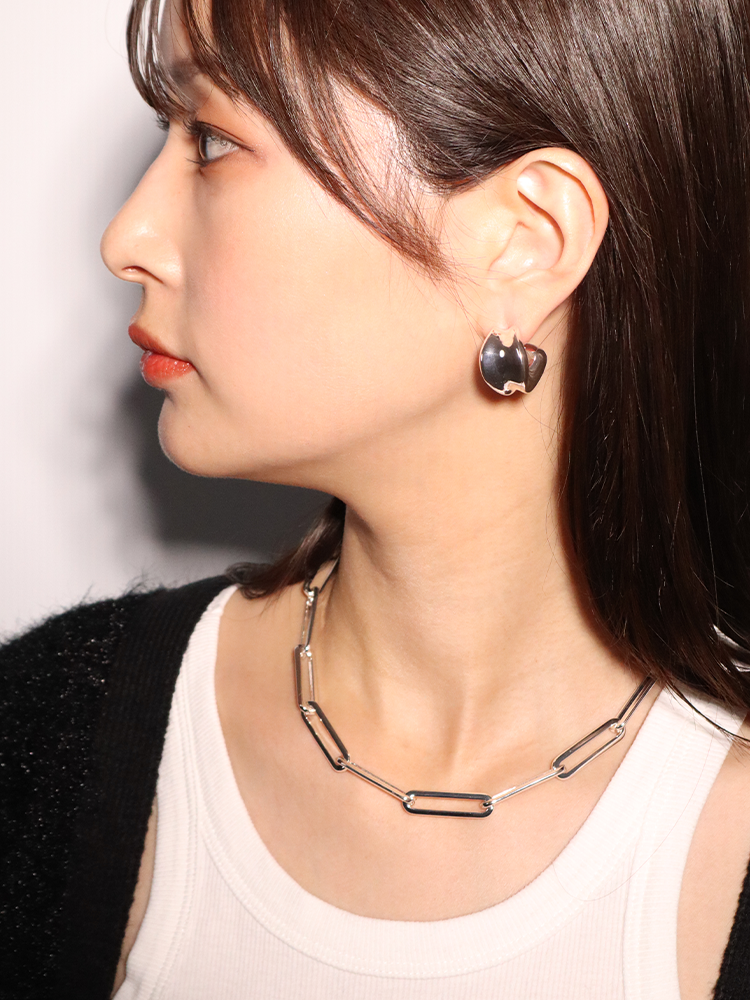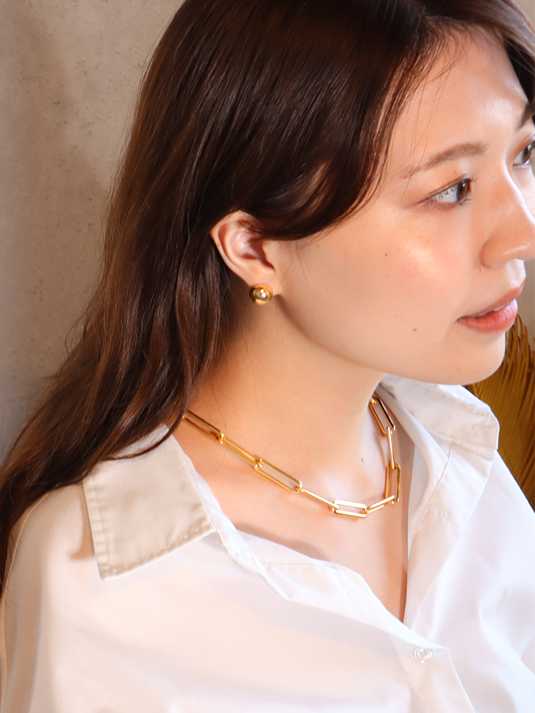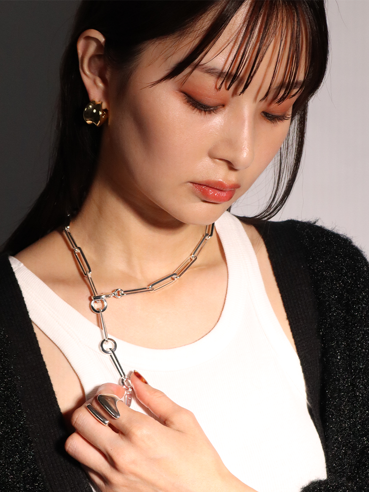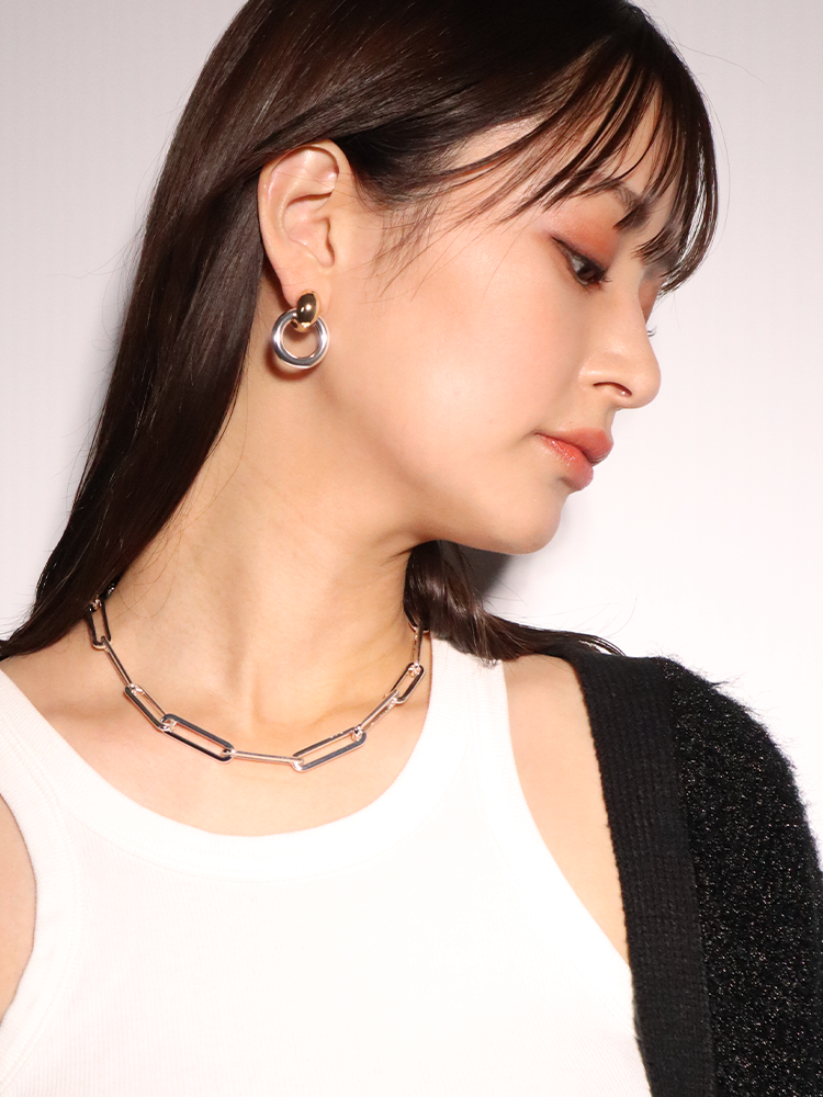 縦長のスクエアリンクでお顔周りをシャープにすっきりと見せてくれるボリュームチェーン。