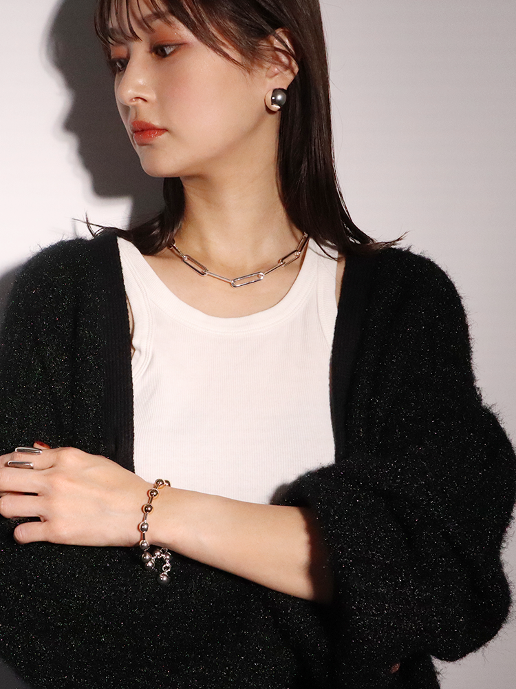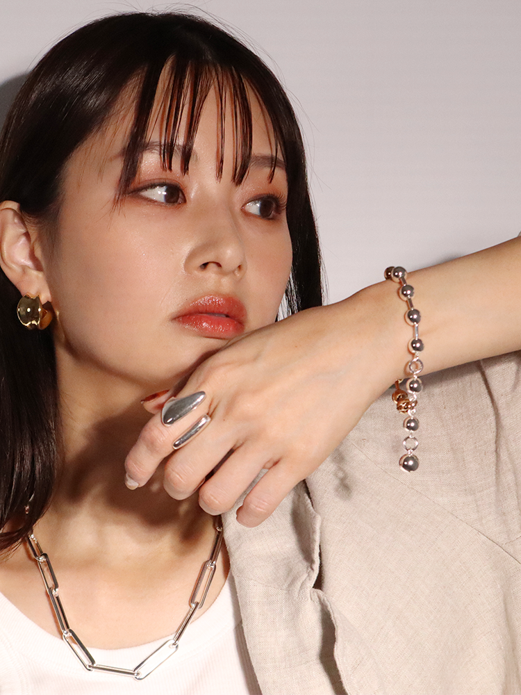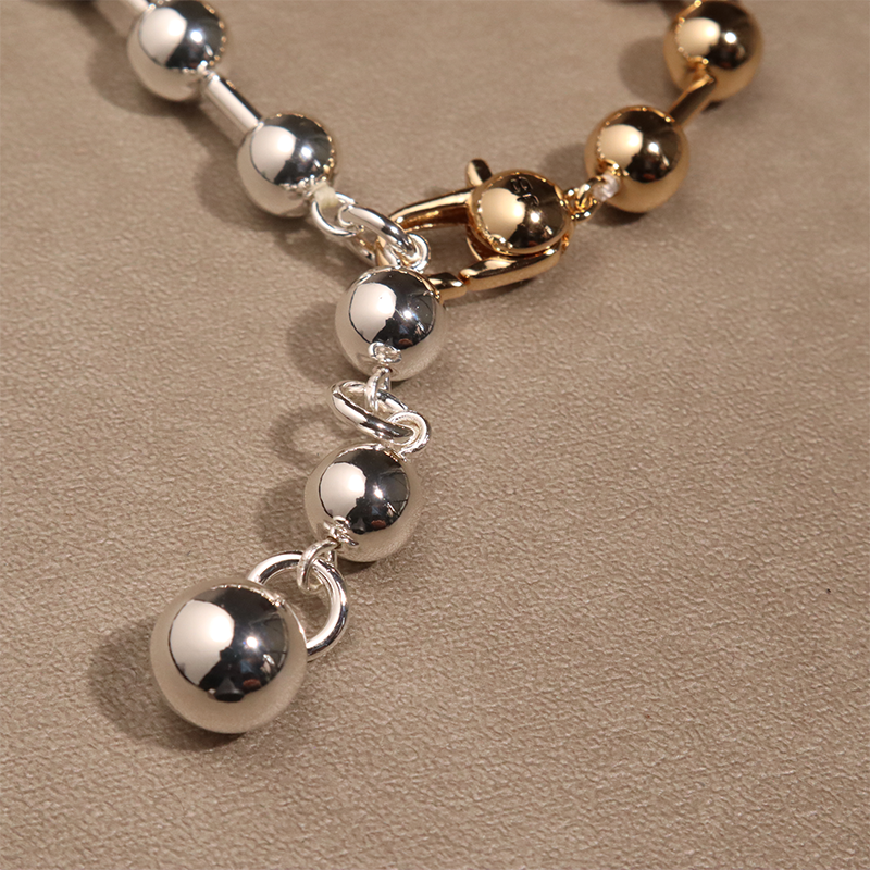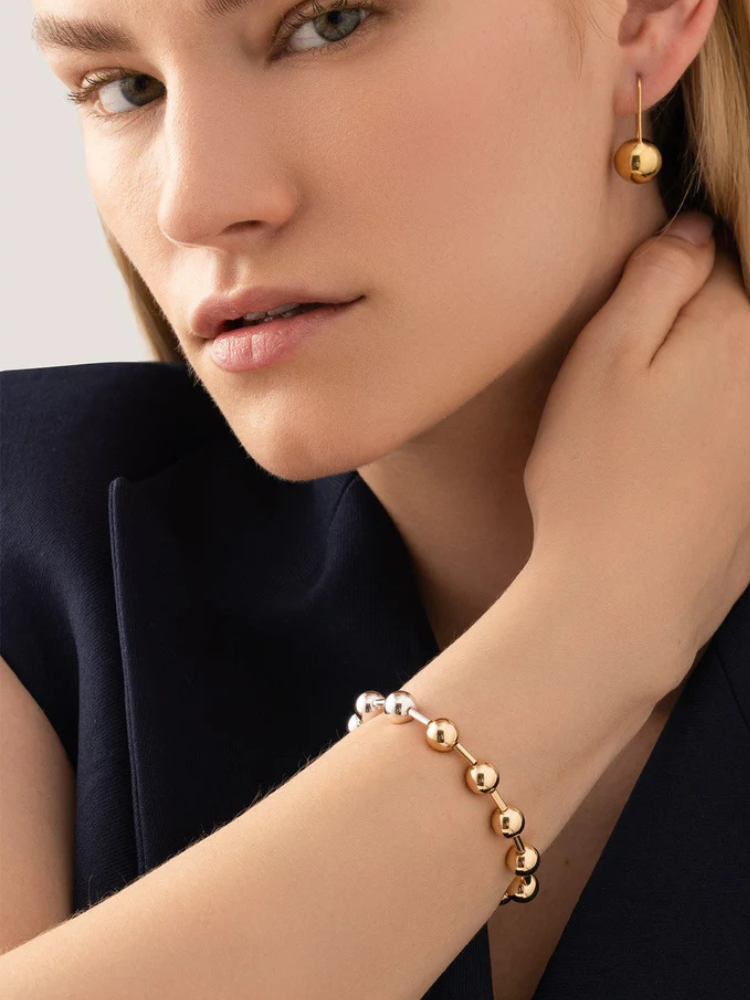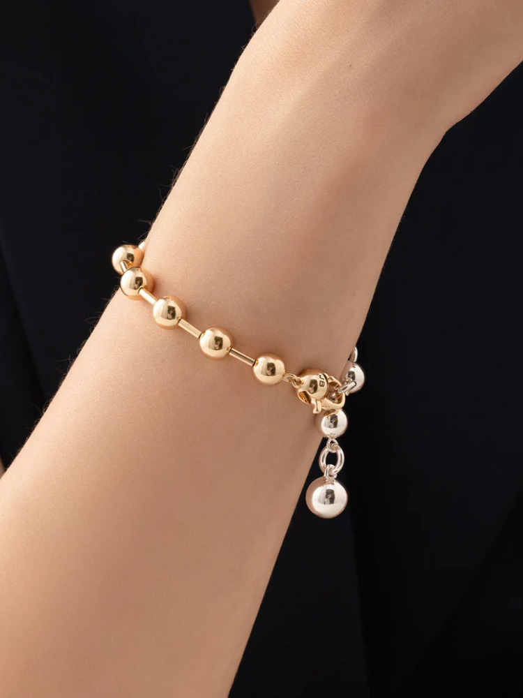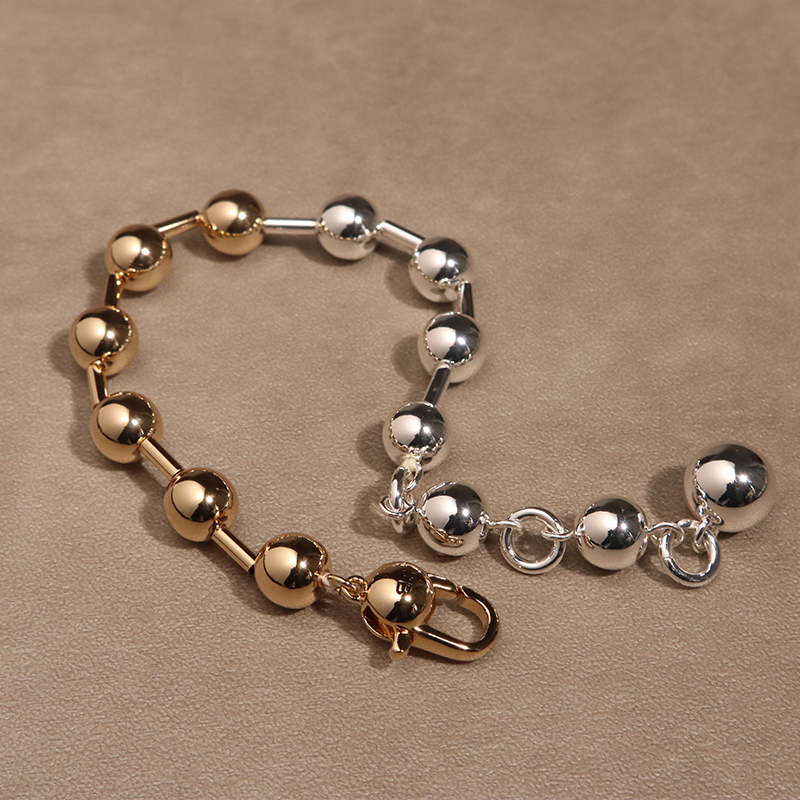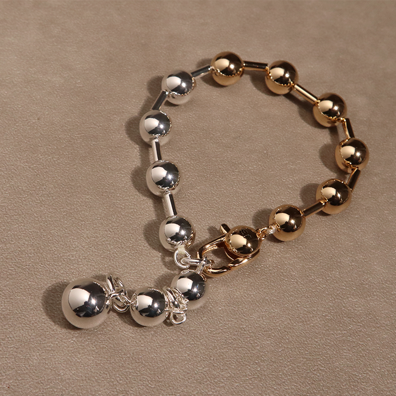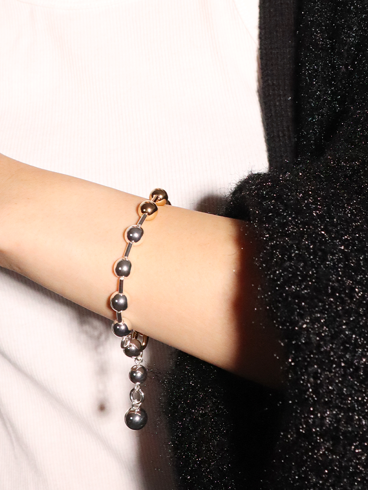 シルバーとゴールドの輝くボールがモダンなブレスレット。