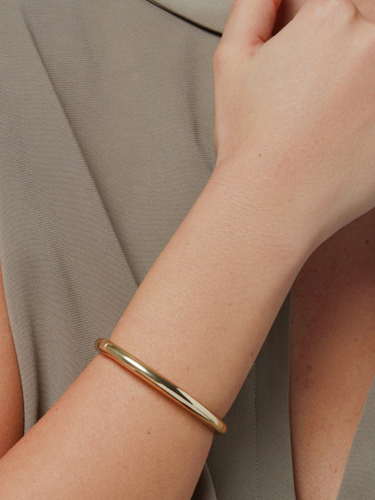 シンプルで太さが絶妙なボリューム感のバングルはきっと欠かせないアイテムに。