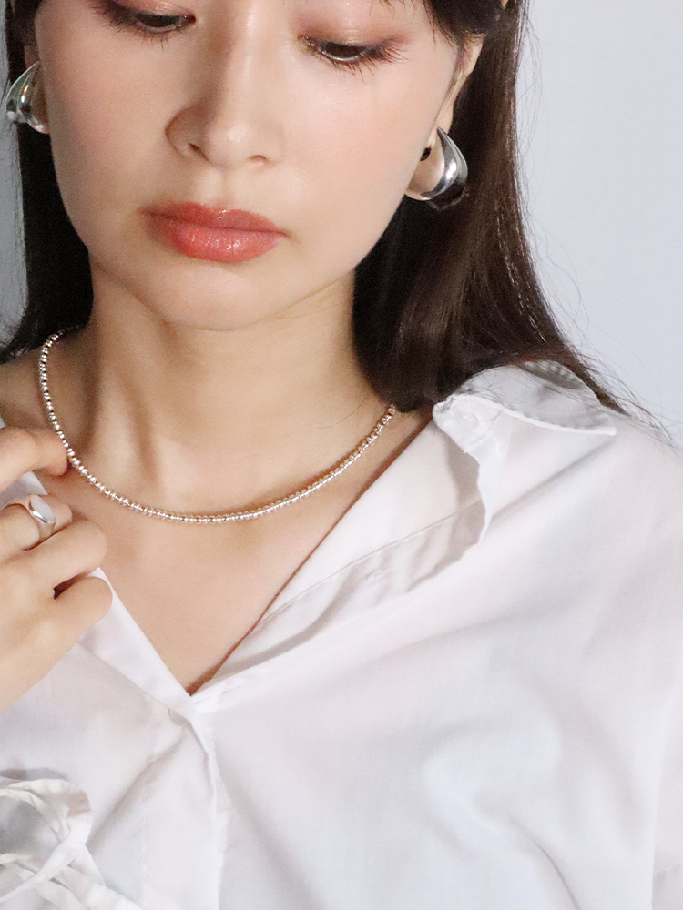 このフォルムは2つのパーツをはんだ付けすることで実現し、吹きガラスで実現したようなシームレスなシルエットを生み出しています。