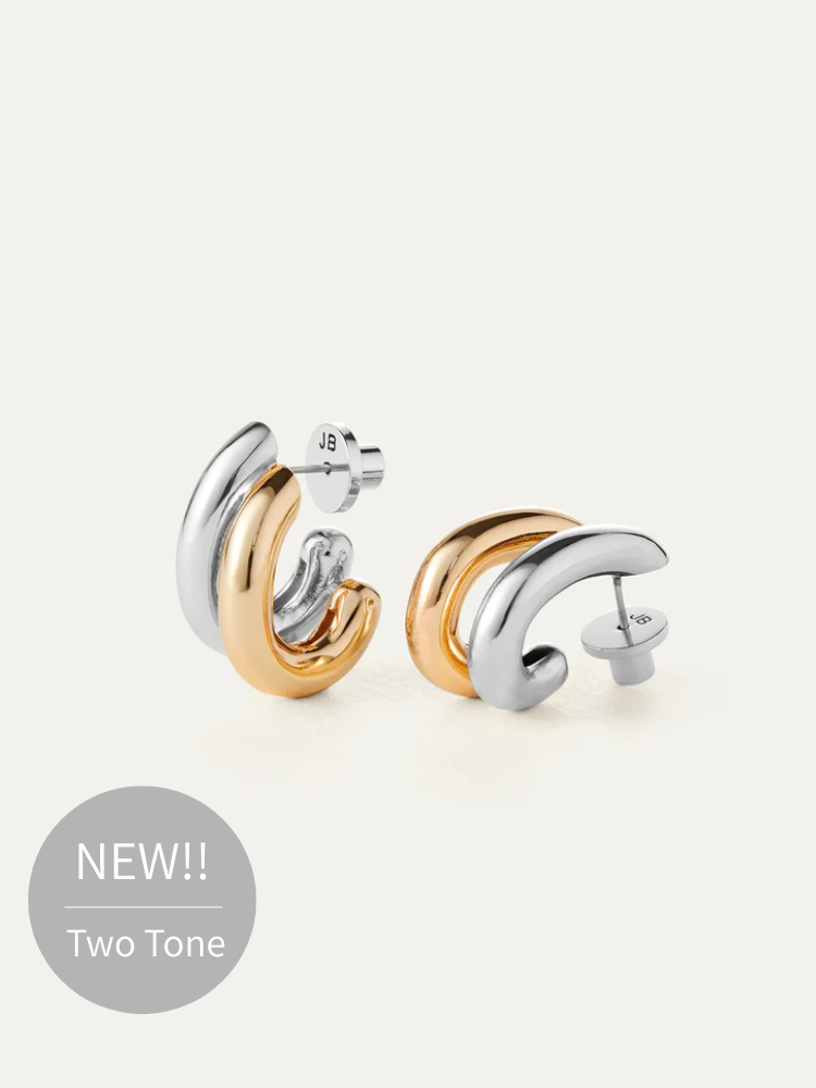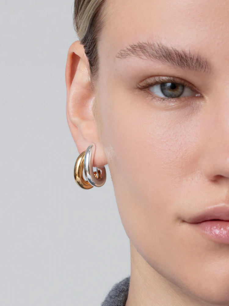 2つのフープピアスが重なっているような錯覚のデザイン。