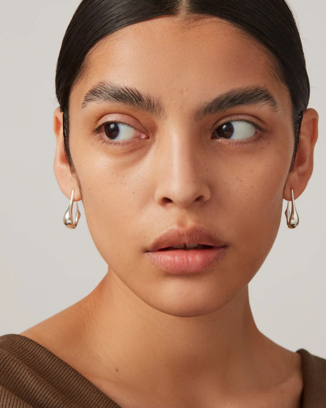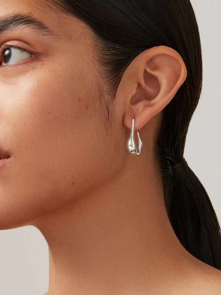 いびつに描かれたティアドロップラインが、彫刻のような存在感を放つフープピアス。