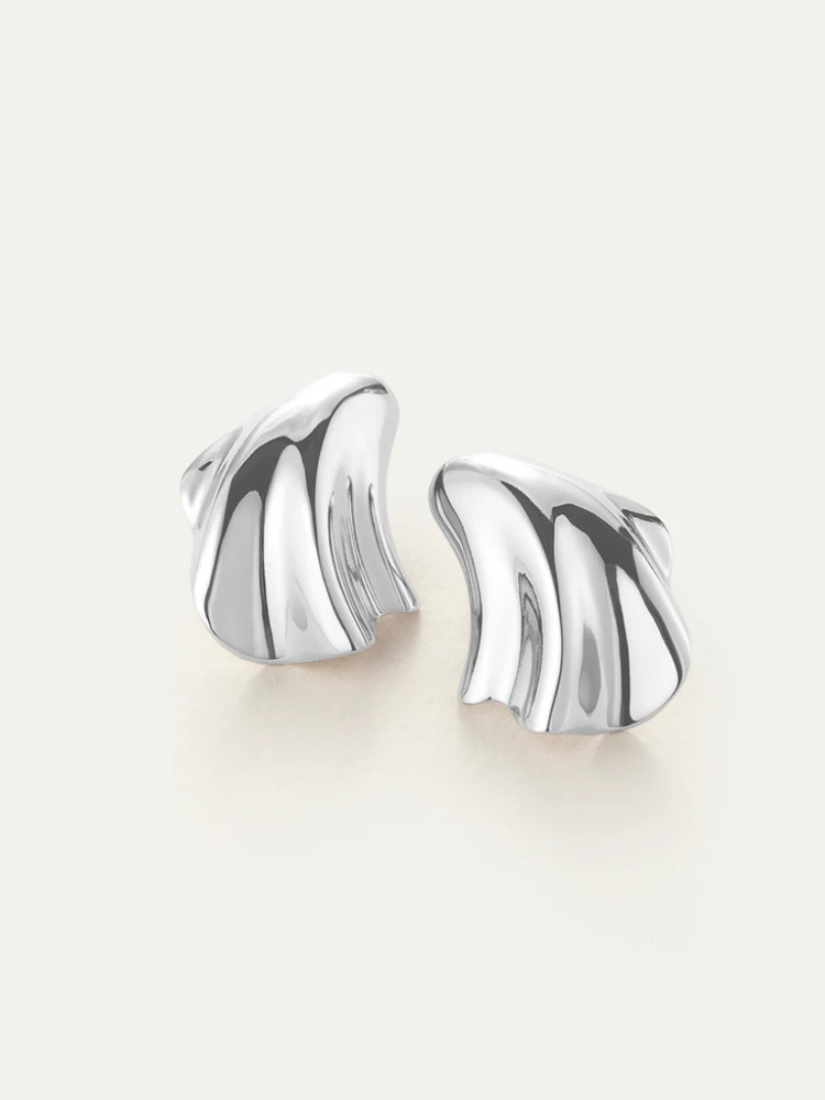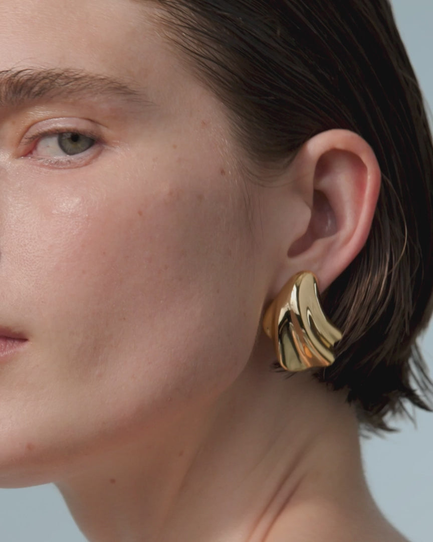 波打つ貝殻の峰や砂丘を彷彿とさせる、立体的なフォルムが目を引くピアス。