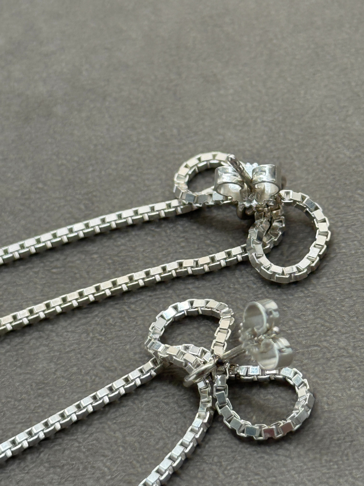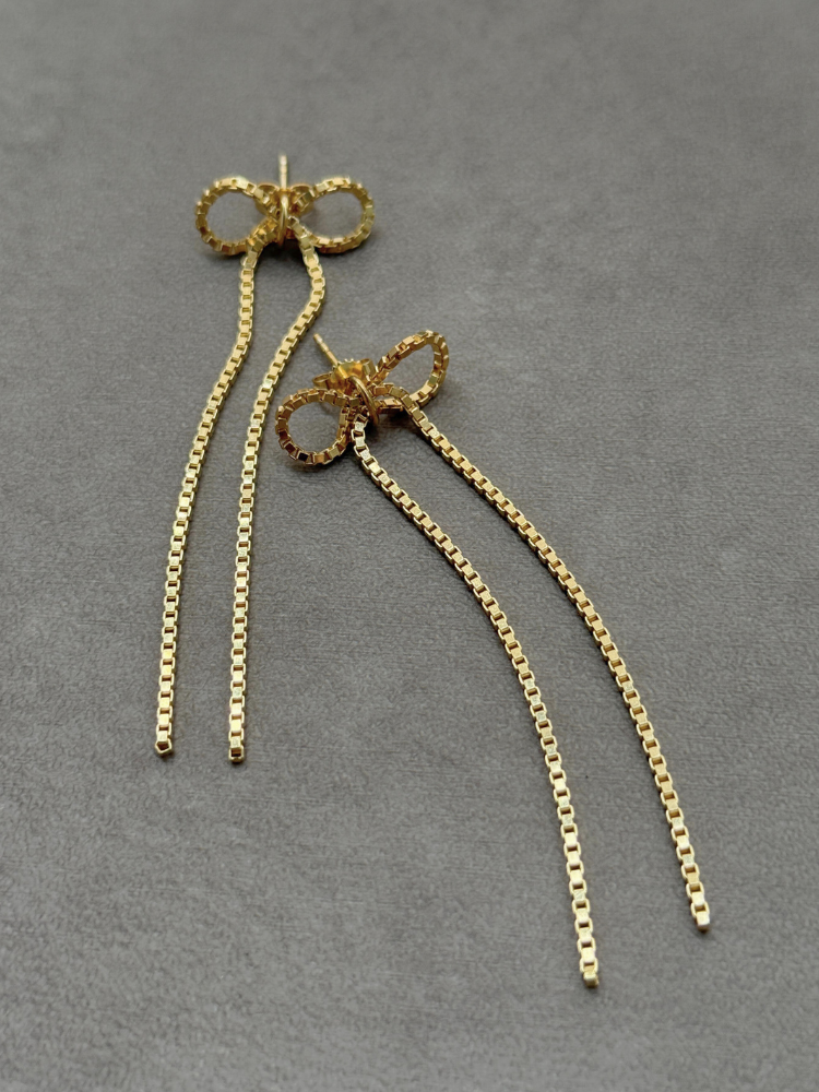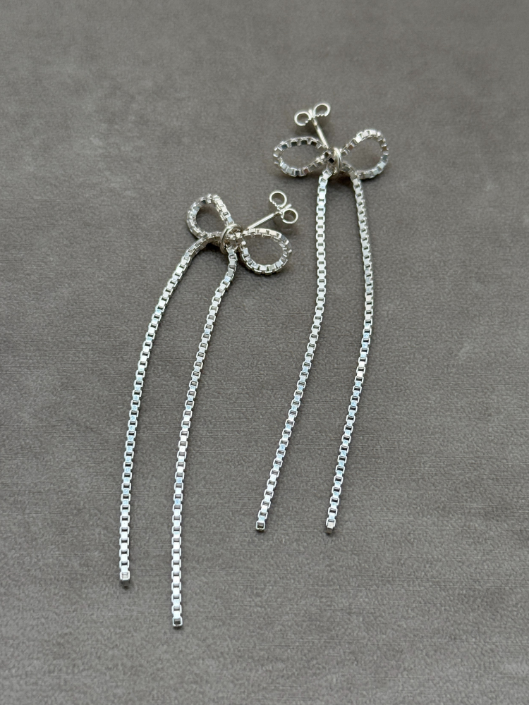 チェーンを結んだようなBOW(リボン)モチーフが大人可愛いピアスです。