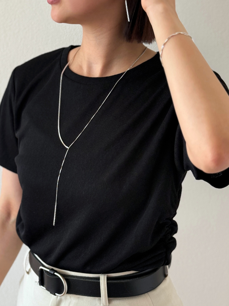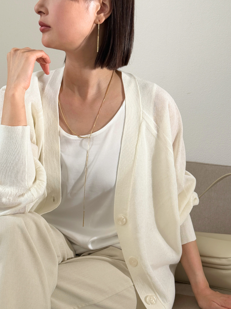 それだけで存在感があるので、シンプルなTシャツに合わせるだけで特別な印象に。