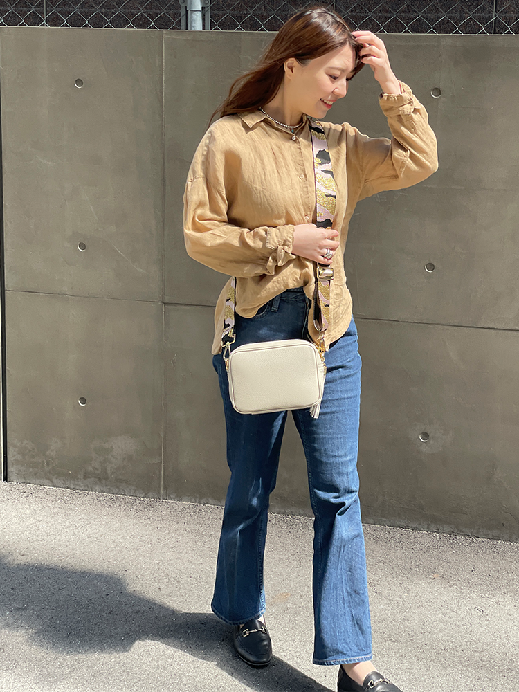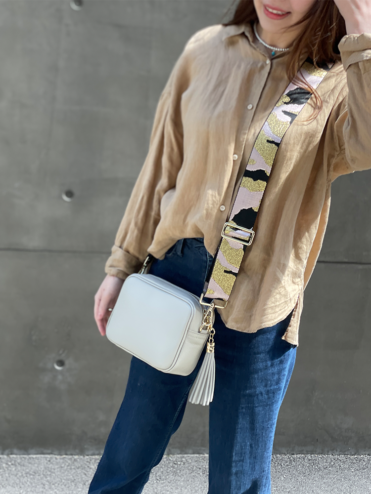 ELIE BEAUMONTのクロスボディバッグ、スマホバッグはもちろん、ストラップを着けることができる箇所があれば他のバッグなどにもつけることができます。