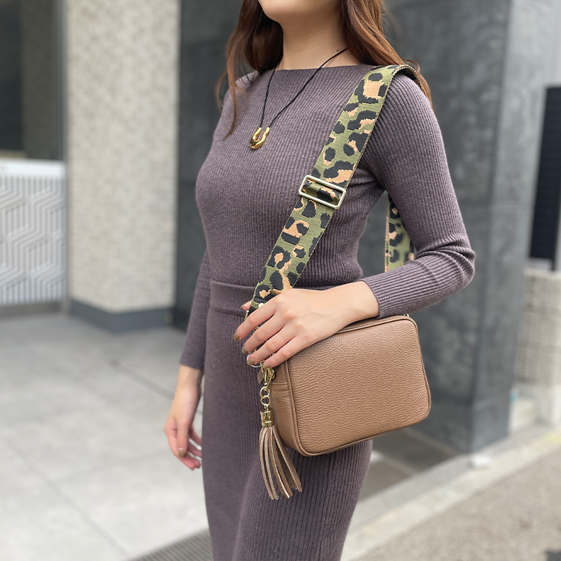長さを調節すれば、クロスボディにもショルダーにも使用できます。